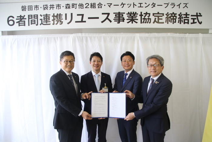 令和6年10月22日、磐田市、袋井市、森町と中遠広域事務組合、袋井市森町広域行政組合が広域でのリユース促進として「おいくら」サービスを運営している株式会社マーケットエンタープライズと協定を締結しました。